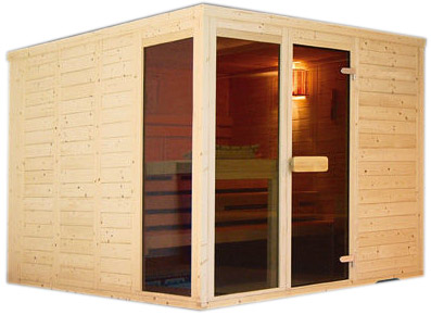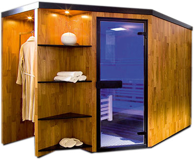 Dieses Modell kann auch mit einem Saunaofen ausgestattet werden. Sie erhalten eine Kombikabine in Designausstattung.
